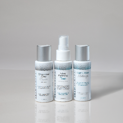 These three products are designed for normal to combination skin. The Charcoal Clay Cleanser will help absorb oil and toxins from the skin with a gentle foamy cleanse without over drying the skin. The Mint Refining Toner will minimize pores and calm the skin. The Light Aloe Moisturizer, even for oily skin, is needed to seal in water to balance surface lipids.